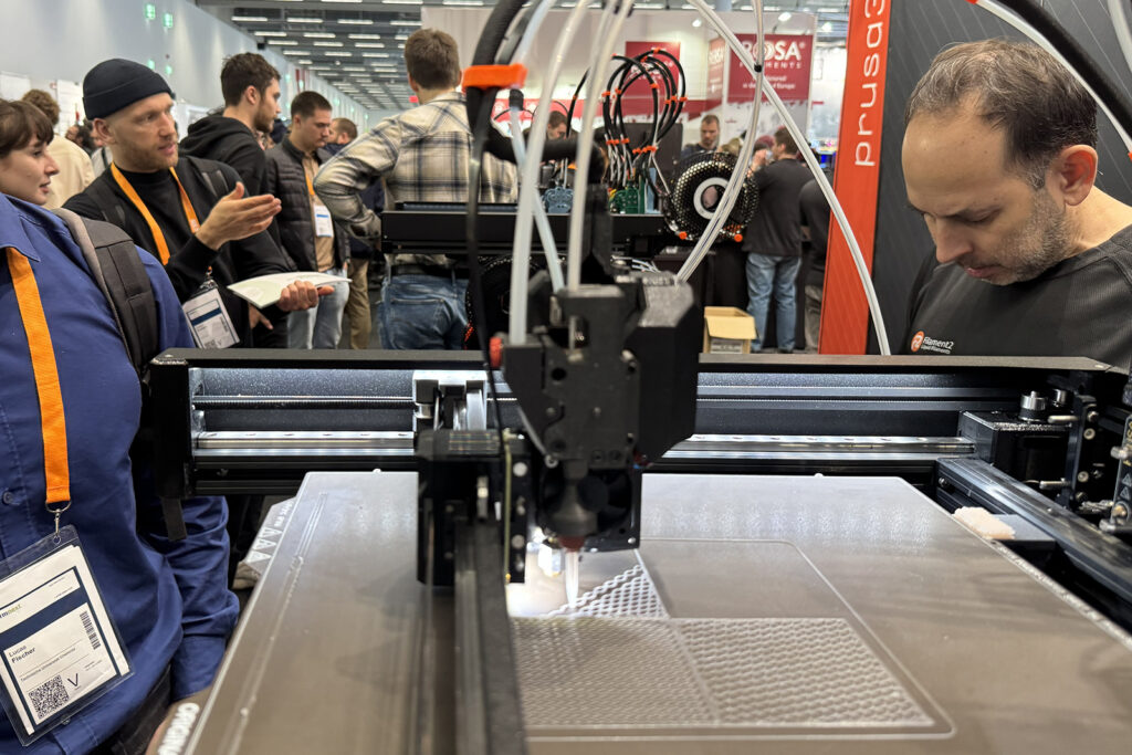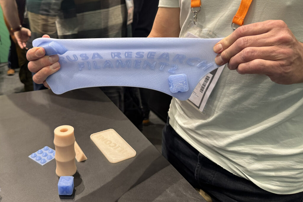 På Formnext ble det ikke bare vist frem maskinvare. En nyhet som tiltrakk seg mange nysgjerrige øyne var et silikonmateriale som kan skrives ut med en Prusa XL gjennom et tillegg til det eksisterende skrivehodet.